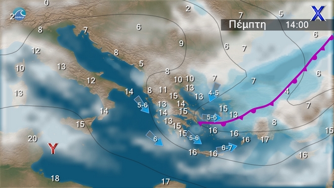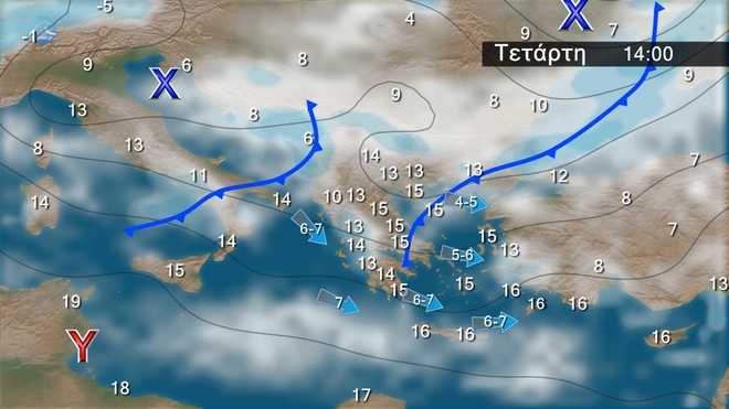 Αραιές νεφώσεις που βαθμιαία από τα δυτικά θα πυκνώσουν και θα εκδηλωθούν τοπικές βροχές, αρχικά στα δυτικά και σταδιακά στα βόρεια και το ανατολικό Αιγαίο.