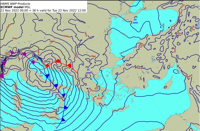 Επιδείνωση θα παρουσιάσει ο καιρός από το απόγευμα της Τρίτης (22-11-2022) έως και το βράδυ της Τετάρτης (23-11-2022) στα δυτικά και βαθμιαία στην ανατολική και νότια νησιωτική χώρα, με ισχυρές βροχές και καταιγίδες.