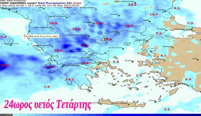Αύριο Τετάρτη (03-05-2023) ισχυρές βροχές και καταιγίδες θα έχουν: