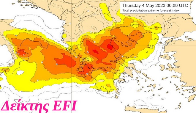 Ο δείκτης επικινδυνότητος EFI (Extreme Forecast Index) δεν είναι ιδιαίτερα υψηλός ωστόσο χρειάζεται προχοχή κατά την διάρκεια εκδήλωσης των φαινομένων.