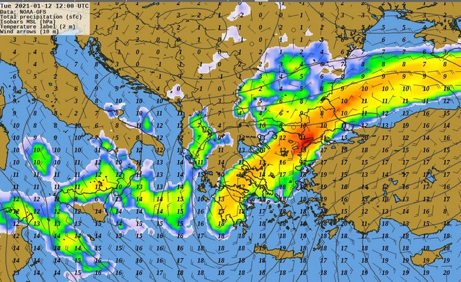 Σύμφωνα με το έκτακτο δελτίο επιδείνωσης του καιρού που εξέδωσε η Εθνική Μετεωρολογική Υπηρεσία ο καιρός θα παροσιάσει μεταβολή από το απόγευμα της Δευτέρας στη δυτική και βαθμιαία τη βόρεια Ελλάδα. Την Τρίτη (12-01-2021) τα έντονα φαινόμενα θα επηρεάσουν τις περισσότερες περιοχές της χώρας.