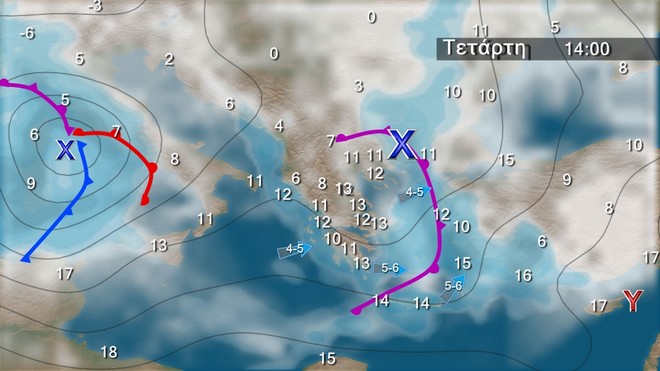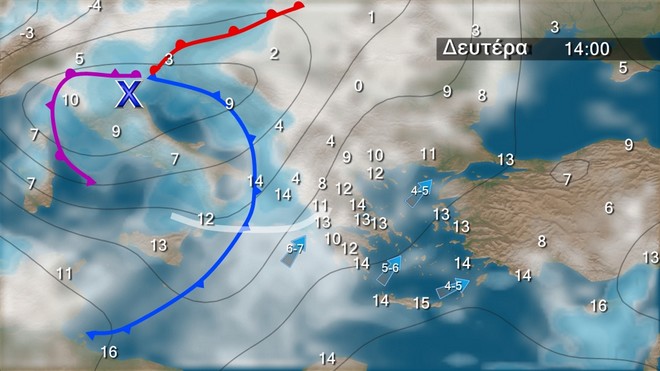 Τη Δευτέρα και από την Ιταλία προβλέπεται νέα μεταβολή του καιρού με βροχές στα δυτικά και νοτιοδυτικούς ανέμους 4 με 6 και τοπικά στο Ιόνιο αργότερα 6 με 7 μποφόρ. Η θερμοκρασία θα παρουσιάσει άνοδο σε όλη τη χώρα. Την Τρίτη από βροχές θα επηρεαστούν τα δυτικά τα κεντρικά και τα βόρεια , ενώ θα εκδηλωθούν και καταιγίδες κυρίως στα δυτικά. Οι νοτιοδυτικοί άνεμοι θα φτάνουν τα 6 με 7 μπ και η θερμοκρασία θα πέσει κυρίως στα δυτικά και τα κεντρικά τμήματα της χώρας. Την Τετάρτη θα επηρεαστούν τα δυτικά τα νότια και το Ανατολικό Αιγαίο, ενώ την Πέμπτη έρχεται ανατολικότερα το χαμηλό της Ιταλίας το οποίο δεν αποκλείεται τοπικά να προκαλέσει έντονα φαινόμενα.