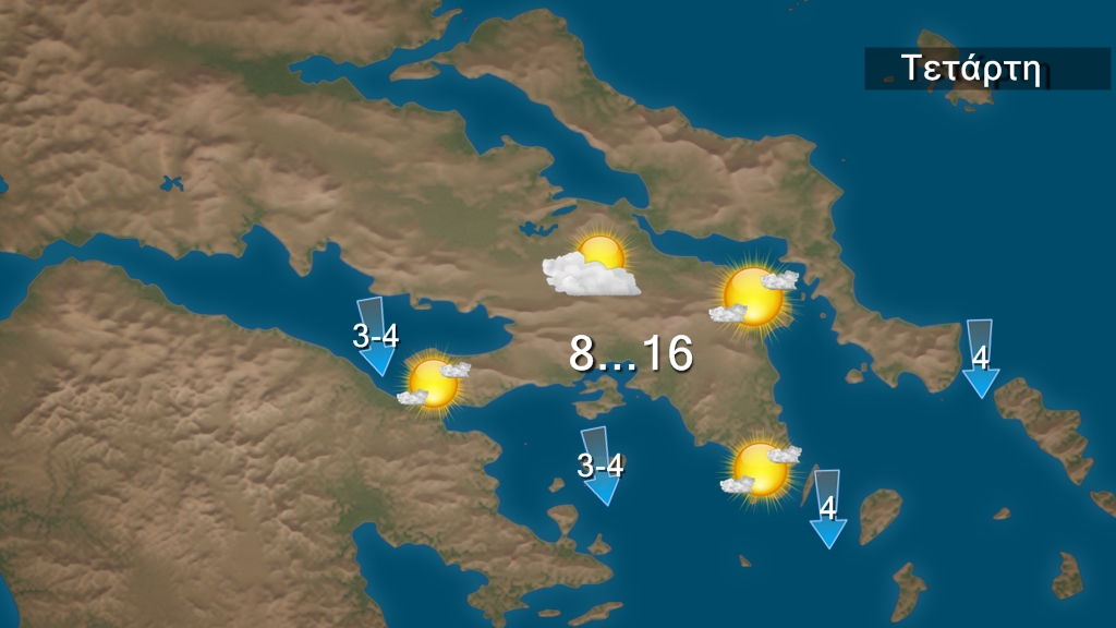Στην Αττική  αρχικά προβλέπονται παροδικές νεφώσεις και μετά το μεσημέρι γενικά αίθριος καιρός . Οι άνεμοι θα πνέουν από βόρειες διευθύνσεις 3 με 4 μποφόρ και η θερμοκρασία θα κυμανθεί από 8 έως 16 βαθμούς Κελσίου.