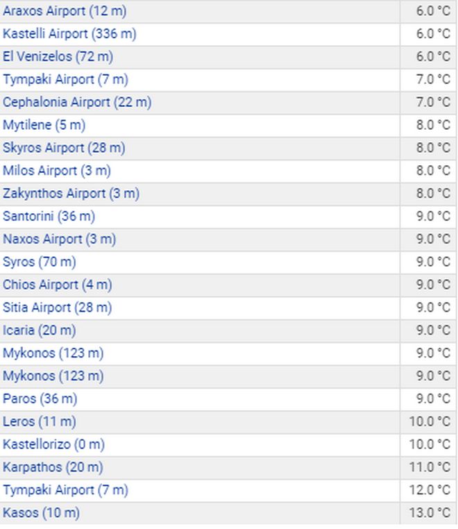 Και οι θερμοκρασίες σε όλη τη χώρα