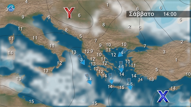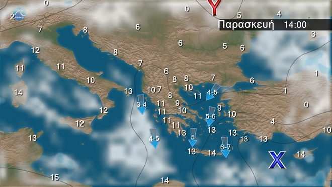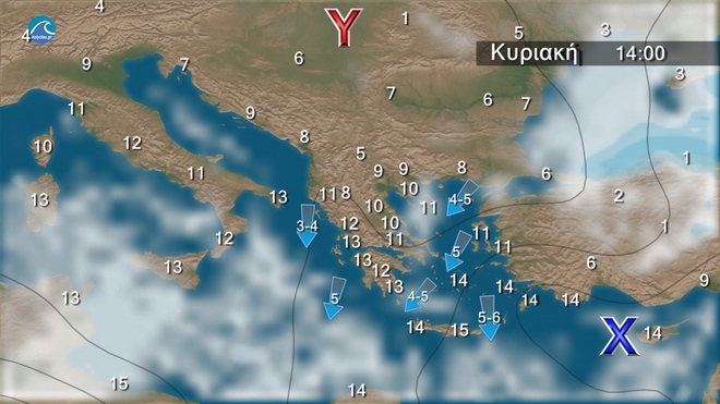 Οι άνεμοι θα φτάνουν στο Αιγαίο τα 7 με 8 και τοπικά στα νοτιοανατολικά τα 8 με 9 με γρήγορη εξασθένηση