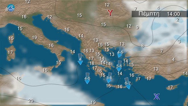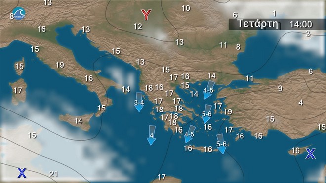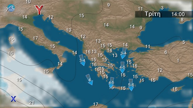 Οι άνεμοι θα φτάνουν στο Αιγαίο τα 5 με 6 μποφόρ και κατά περιόδους τα 6 με 7 μποφόρ