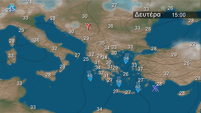 Τυπικά καλοκαιρινός καιρός σχεδόν όλη την ερχόμενη εβδομάδα με μικρή περαιτέρω άνοδο της θερμοκρασίας ,ενώ θα επικρατήσουν μελτέμια που η έντασή τους δεν προβλέπεται να ξεπεράσει τα 6 με 7 μποφόρ στο Αιγαίο.