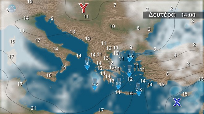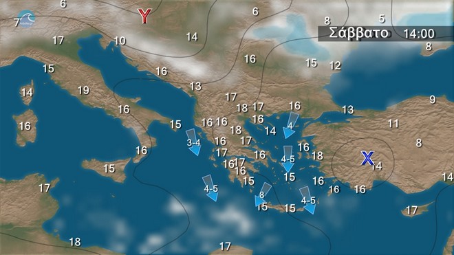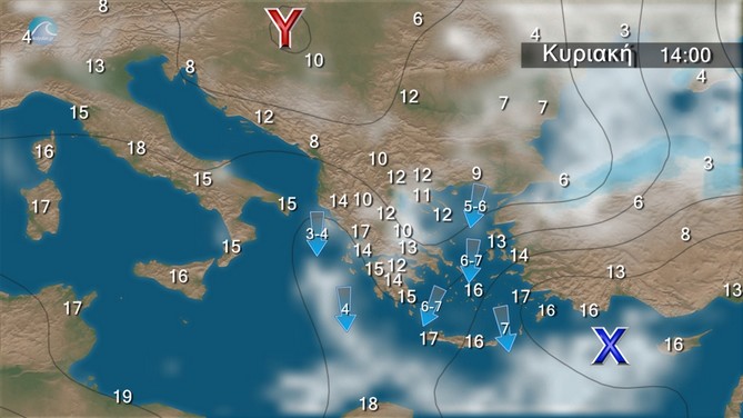 • Οι άνεμοι θα φτάνουν στο Αιγαίο τα 5 με 6 μποφόρ και κατά περιόδους τα 7 με 8 μποφόρ