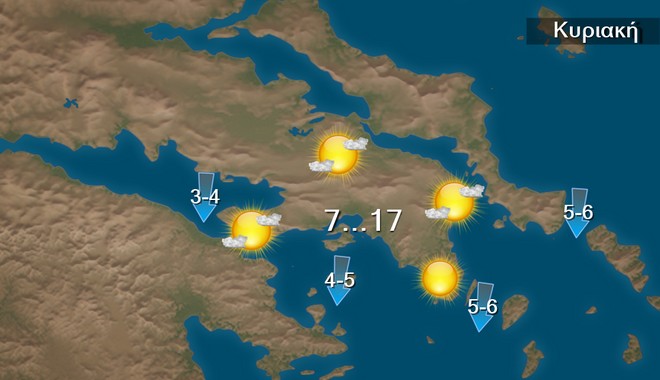 Στην Αττική προβλέπεται σχεδόν αίθριος καιρός με λίγες πρόσκαιρες νεφώσεις. Οι άνεμοι θα πνέουν βόρειοι 4 με 5 και στα ανατολικά 5 με 6 μποφόρ με βαθμιαία εξασθένηση . Η θερμοκρασία θα κυμανθεί από 7 έως 17 βαθμούς Κελσίου.