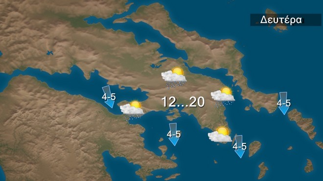 Την Τρίτη αρχικά προβλέπονται βροχές και καταιγίδες πρόσκαιρα κατά τόπους ισχυρές στα Δωδεκάνησα, την Κρήτη και πιθανώς τις Κυκλάδες, που βαθμιαία θα εξασθενήσουν. Στις υπόλοιπες περιοχές θα επικρατήσει άστατος καιρός, με νεφώσεις παροδικά αυξημένες και υπάρχει πιθανότητα να εκδηλωθούν τοπικές βροχές κατά διαστήματα. Θα υπάρχουν όμως και διαστήματα ηλιοφάνειας.