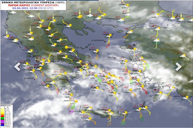 Σε υψηλά επίπεδα κυμαίνεται η θερμοκρασία στα κεντρικά και νότια και έχει ξεπεράσει τους 20 βαθμούς, ενώ τοπικά στην Κρήτη φτάνει τους 25 με 28 βαθμούς Κελσίου λόγω των νοτιάδων. Ήδη στα Χανιά στις 12:30 είχε 26 βαθμούς Κελσίου και ο υδράργυρος έχει την τάση να ανέβει κι άλλο. Σε αυτό βοηθούν και οι Ν-ΝΔ άνεμοι που ως καταβάτες σε πολλές περιοχές ανεβάζουν σε τοπικό επίπεδο τη θερμοκρασία.