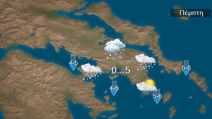 Στην Αττική προβλέπονται χιονοπτώσεις ή χιονόνερο. Οι χιονοπτώσεις από το πρωί βαθμιαία θα ενταθούν και μέχρι το απόγευμα στα βόρεια και τα ανατολικά θα είναι κατά τόπους πυκνές. Οι άνεμοι θα πνέουν βόρειοι βορειοανατολικοί 5 με 6 μποφόρ και η θερμοκρασία θα κυμανθεί από 0 έως 5 βαθμούς Κελσίου.