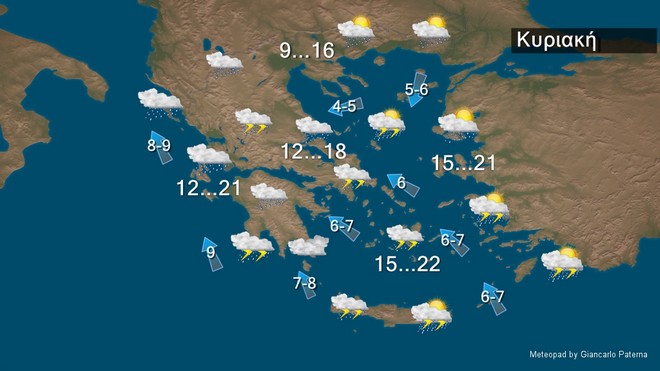Από το απόγευμα της Κυριακής σφοδρό κύμα κακοκαιρίας θα επηρεάσει σχεδόν όλη τη χώρα με κύρια χαρακτηριστικά τις ισχυρές βροχές και καταιγίδες που θα συνοδεύονται από χαλαζοπτώσεις και στα πελάγη θα πνέουν θυελλώδεις νοτιάδες. Η πρόγνωση του διευθυντή της ΕΜΥ Θοδωρή Κολυδά για το News 24/7.
