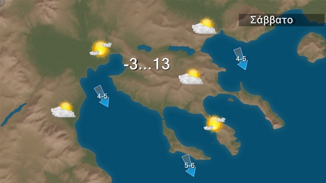 Το Σάββατο μόνο στην Κρήτη υπάρχει πιθανότητα ασθενών τοπικών βροχών τις πρωινές ώρες και στα ορεινά ασθενών χιονοπτώσεων. Στην υπόλοιπη χώρα θα επικρατήσει γενικά αίθριος καιρός, ενώ από το απόγευμα στα δυτικά και τα βόρεια θα αναπτυχθούν τοπικές νεφώσεις.