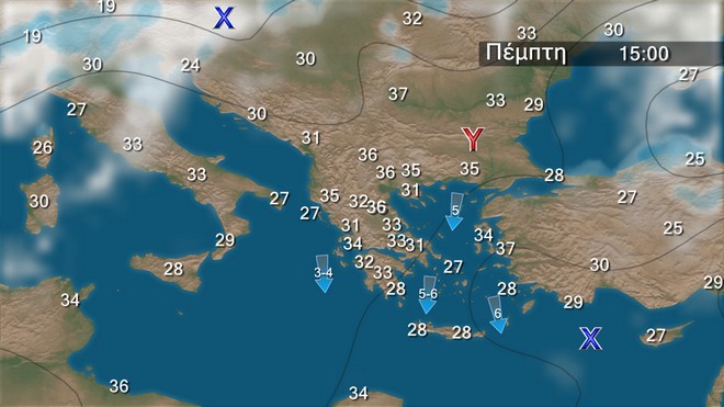 Η τάση της θερμοκρασίας του καιρού είναι ανοδική από 23 έως και 25 Αυγούστου με τιμές όμως που δεν προβλέπεται να ξεπεράσουν τους 36 με 38 βαθμούς Κελσίου.