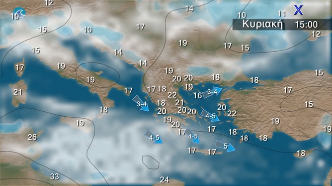 Οι άνεμοι θα πνέουν από ανατολικές διευθύνσεις στο Αιγαίο 7 τοπικά 8 μποφόρ.