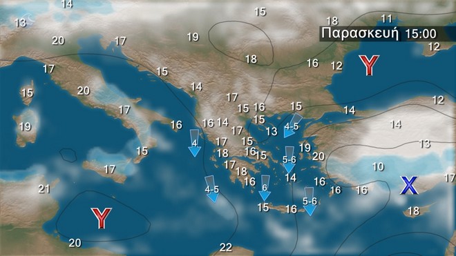 • Οι άνεμοι θα εξασθενήσουν από την Παρασκευή το απόγευμα και μετά