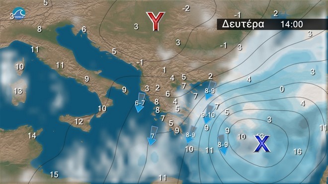 Οι άνεμοι θα ενισχυθούν πολύ από το απόγευμα της Κυριακής στο Αιγαίο και θα φτάσουν τα 8 με 9 μποφόρ και τη Δευτέρα τοπικά και τα 10 μποφόρ με εξασθένηση από αργά το απόγευμα της Τρίτης