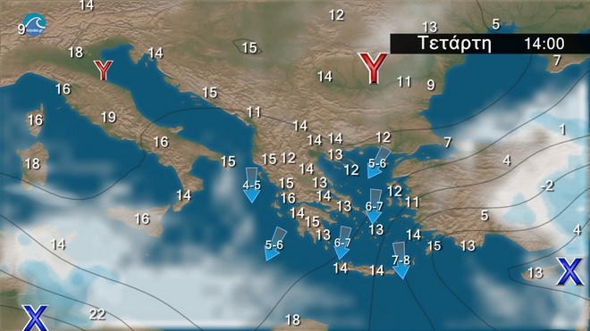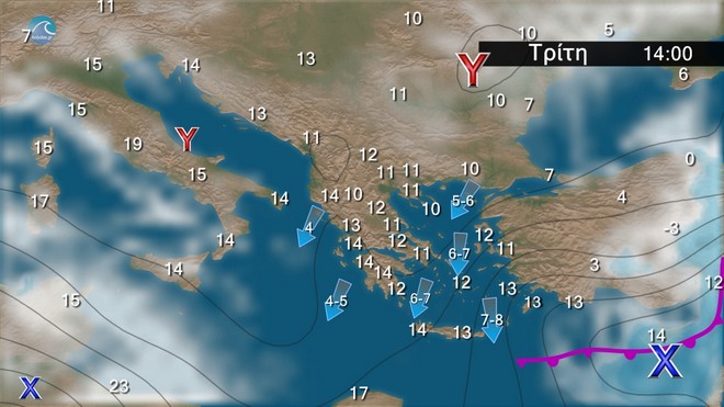 • Οι βοριάδες θα ενισχυθούν και θα φτάσουν τα 7-8 και πιθανόν και τα 9 μποφόρ τη Δευτέρα στο Αιγαίο