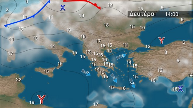 Με ηλιοφάνεια σε όλη τη χώρα θα κυλήσει ο καιρός , οι άνεμοι στα νότια δεν θα ξεπερνούν τα 6 με 7 μπ και οι θερμοκρασίες θα κυμαίνονται σε επίπεδα πάνω από τα κανονικά για την εποχή. Δεν υπάρχει άμεσα κάποιο σύστημα να μας επηρεάσει και μόνο το Σαββατοκύριακο μια διαταραχή που βρίσκεται στη κεντρική Ευρώπη θα κινηθεί νοτιότερα και θα επηρεάσει μερικώς τη χώρα μας με βροχές και πρόσκαιρη πτώση της θερμοκρασίας.