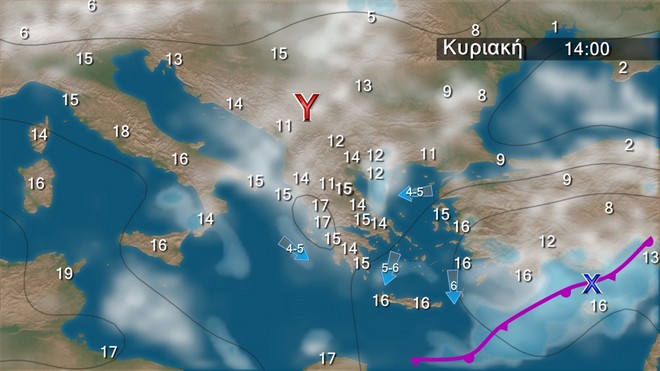Την Κυριακή στα δυτικά προβλέπονται λίγες νεφώσεις. Στην υπόλοιπη χώρα θα υπάρχει παροδική συννεφιά με τοπικές βροχές και στα νότια σποραδικές καταιγίδες. Τα φαινόμενα προς το βράδυ θα εξασθενήσουν και τη νύχτα θα σταματήσουν. Η θερμοκρασία θα πέσει ακόμη λίγο στα βόρεια και ανατολικά.