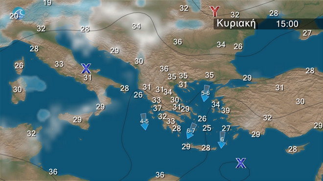 Γενικά αίθριος καιρός. Τις μεσημβρινές και απογευματινές ώρες στα κεντρικά και βόρεια ηπειρωτικά θα αναπτυχθούν τοπικές νεφώσεις. Οι άνεμοι θα πνέουν από βόρειες διευθύνσεις 3 με 5, στα ανατολικά 4με 6 και στο Αιγαίο πρόσκαιρα 7 μποφόρ. Η θερμοκρασία δεν θα σημειώσει αξιόλογη μεταβολή.
