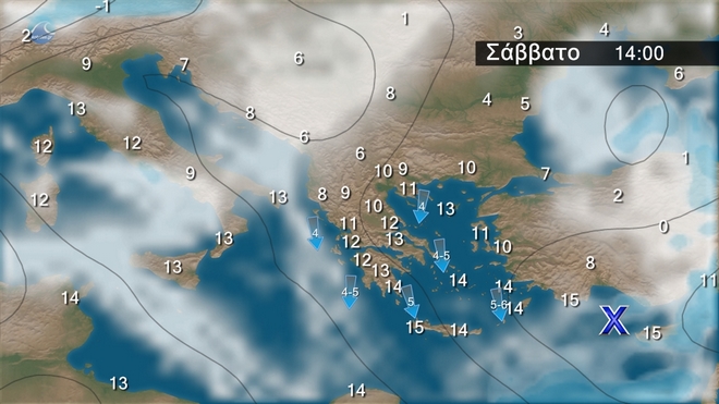 Νεφώσεις με τοπικές βροχές αρχικά στα δυτικά και τα βόρεια και βαθμιαία και στην υπόλοιπη χώρα. Μεμονωμένες καταιγίδες θα εκδηλωθούν στο Αιγαίο. Χιονοπτώσεις θα σημειωθούν στα ορεινά, στα ημιορεινά της βόρειας χώρας, βαθμιαία και σε περιοχές της βόρειας χώρας με χαμηλότερο υψόμετρο καθώς και στα ημιορεινά της κεντρικής χώρας. Οι άνεμοι θα πνέουν στα νότια δυτικοί νοτιοδυτικοί 4 με 5 μποφόρ. Στα βόρεια από βόρειες διευθύνσεις 4 με 6 και βαθμιαία 7 και στο Αιγαίο τοπικά 8 μποφόρ. Η θερμοκρασία θα σημειώσει πτώση στα βόρεια. Παγετός θα σημειωθεί κατά τόπους στα βόρεια ηπειρωτικά τις πρωινές και βραδινές ώρες.