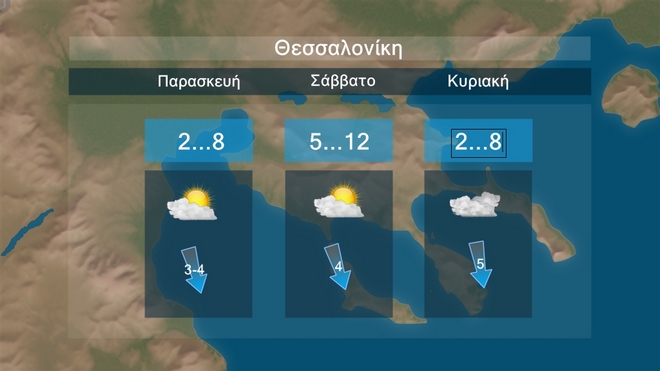 Τοπικές νεφώσεις και βορειοδυτικοί άνεμοι στη Θεσσαλονίκη το επόμενο τριήμερο και με θερμοκρασίες περί τους 8 με 11 βαθμούς Κελσίου.