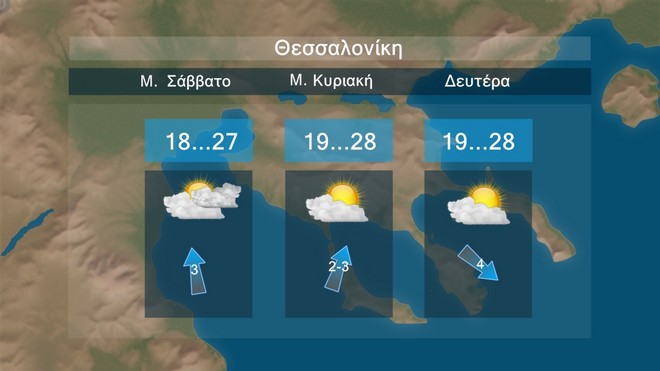 Στη Θεσσαλονίκη προβλέπονται τοπικές νεφώσεις παροδικά αυξημένες . Η θερμοκρασία θα έχει μέγιστες τιμές περί τους 27 με 28 βαθμούς Κελσίου