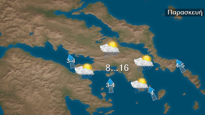 Στην Αττική αρχικά προβλέπονται αραιές νεφώσεις παροδικά πιο πυκνές με πρόσκαιρες τοπικές βροχές κυρίως τις βραδινές ώρες. Οι άνεμοι θα πνέουν νότιοι 3 με 4 και πρόσκαιρα έως 4 με 5 μποφόρ. Η θερμοκρασία θα κυμανθεί από 08 έως 16 βαθμούς Κελσίου.