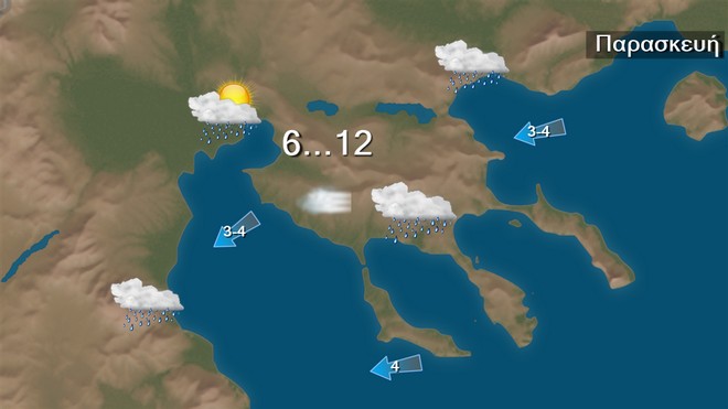 Την Παρασκευή προβλέπονται νεφώσεις με τοπικές βροχές στα δυτικά, τα νότια, τη Θράκη και το ανατολικό Αιγαίο και βαθμιαία και στην υπόλοιπη χώρα. Σποραδικές καταιγίδες θα εκδηλωθούν κυρίως στο Ιόνιο και το βορειοανατολικό Αιγαίο. Τα φαινόμενα από το απόγευμα στα δυτικά θα ενταθούν. Λίγα χιόνια θα πέσουν στα ορεινά. Η ορατότητα θα είναι τοπικά περιορισμένη τις πρωινές ώρες και θα σχηματιστούν τοπικές ομίχλες κυρίως στα βόρεια ηπειρωτικά. Οι άνεμοι θα πνέουν από νότιες διευθύνσεις 3 με 5 και στο Ιόνιο τοπικά 6 μποφόρ, γρήγορα στα βορειοανατολικά θα στραφούν σε βορειοανατολικούς με την ίδια ένταση.