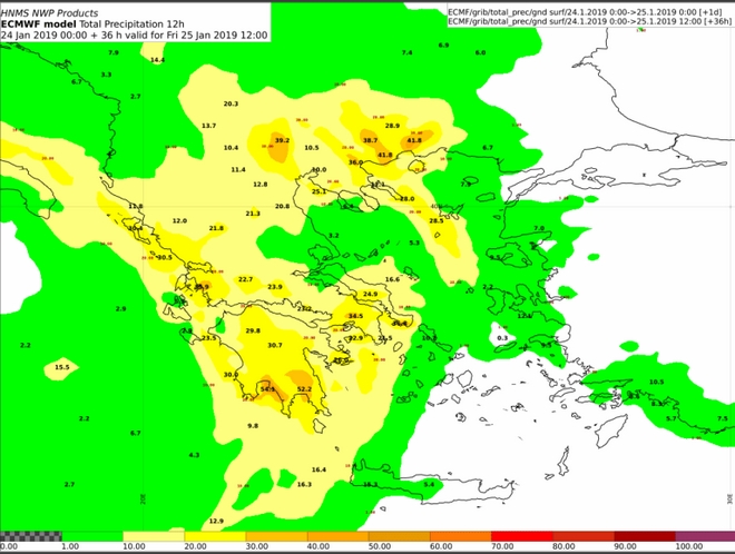 Σύμφωνα με τα τελευταία προγνωστικά δεδομένα προβλέπονται τοπικά μεγάλα ύψη βροχοπτώσεων από το βαρομετρικό χαμηλό το οποίο αύριο Παρασκευή θα επηρεάσει σχεδόν όλη τη χώρα και περιγράφεται στο σχετικό Έκτακτο Δελτίο.
