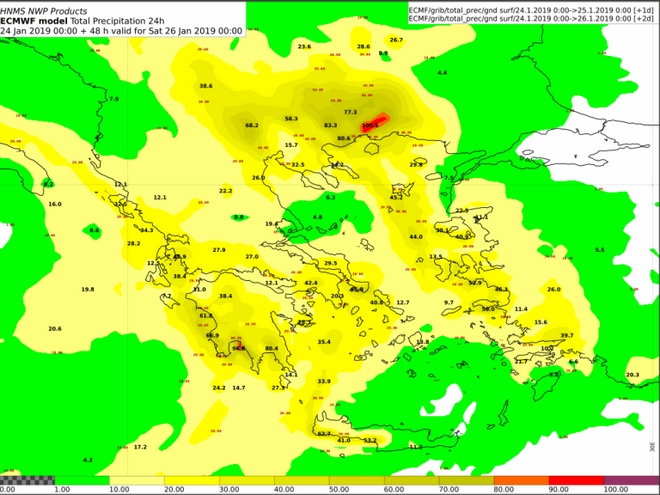 Θα πρέπει πάντως να σημειώσουμε ότι οριακά φτάνουμε και σε κόκκινο συναγερμό στη Καβάλα και Ξάνθη στα ύψη βροχής 24 ωρών όπου ξεπερνάμε τα 100 mm βροχής .
