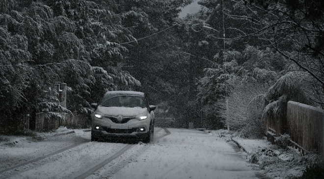 Κλειστός ο δρόμος στην Πάρνηθα από το ύψος του τελεφερίκ προς Καζίνο, λόγω χιονόπτωσης. Κανονικά η κυκλοφορία στην Αθηνών-Λαμίας. Πού καταγράφηκαν οι χαμηλότερες θερμοκρασίες.