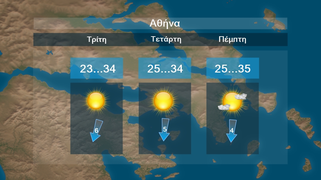 Στην Αθήνα προβλέπεται αίθριος καιρός. Η θερμοκρασία θα κυμανθεί μεταξύ 34 και 35 βαθμών Κελσίου