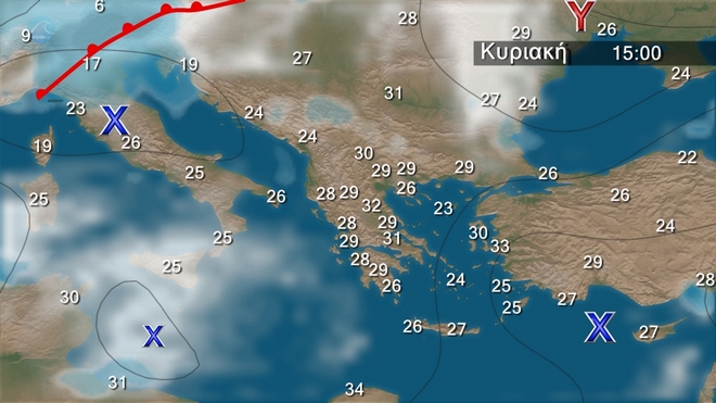 Οι άνεμοι θα πνέουν στα δυτικά από δυτικές διευθύνσεις 3 με 4 μποφόρ, στα ανατολικά από βόρειες 4 με 6 και στο νοτιοανατολικό Αιγαίο τοπικά 7 μποφόρ. Η θερμοκρασία δεν θα σημειώσει αξιόλογη μεταβολή και θα φτάσει στα δυτικά τους 32 βαθμούς στα υπόλοιπα ηπειρωτικά τους 32 με 33, στις Κυκλάδες τους 27 στη νότια Κρήτη τους 30 και στο Ανατολικό Αιγαίο τους 30 βαθμούς Κελσίου.