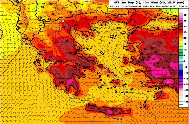 Οι θερμοκρασίες στις 3 το μεσημέρι της Κυριακής του Πάσχα από το μοντέλο GFS