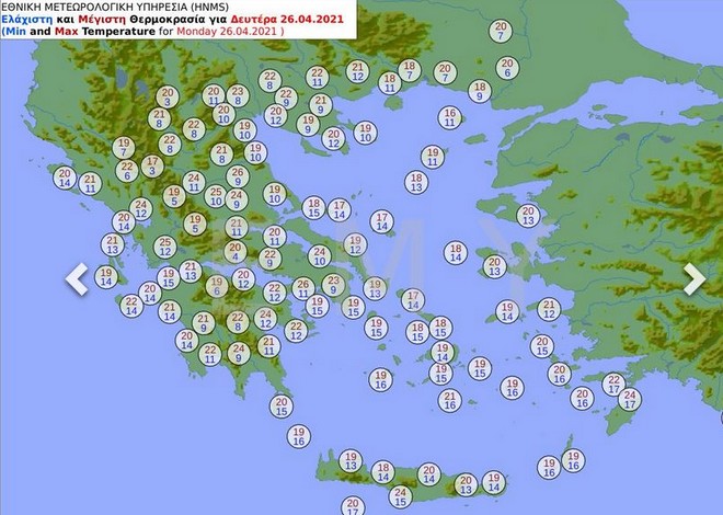 Ενδεικτικά σας παρουσιάζουμε τις θερμοκρασίες που θα επικρατήσουν την Μεγάλη Τρίτη.