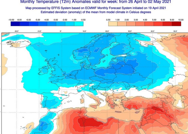 Από πλευράς θερμοκρασιών σας παρουσιάζουμε την τάση των θερμοκρασιών για τις επόμενες ημέρες όπου υπάρχει ανοδική τάση και σε γενικές γραμμές και θα βρισκόμαστε σε επίπεδα πάνω τα κανονικά για την εποχή κατά 3 με 6 βαθμούς Κελσίου , σύμφωνα με το αξιόπιστο ECMWF της υπηρεσίας Copernicus/Effis