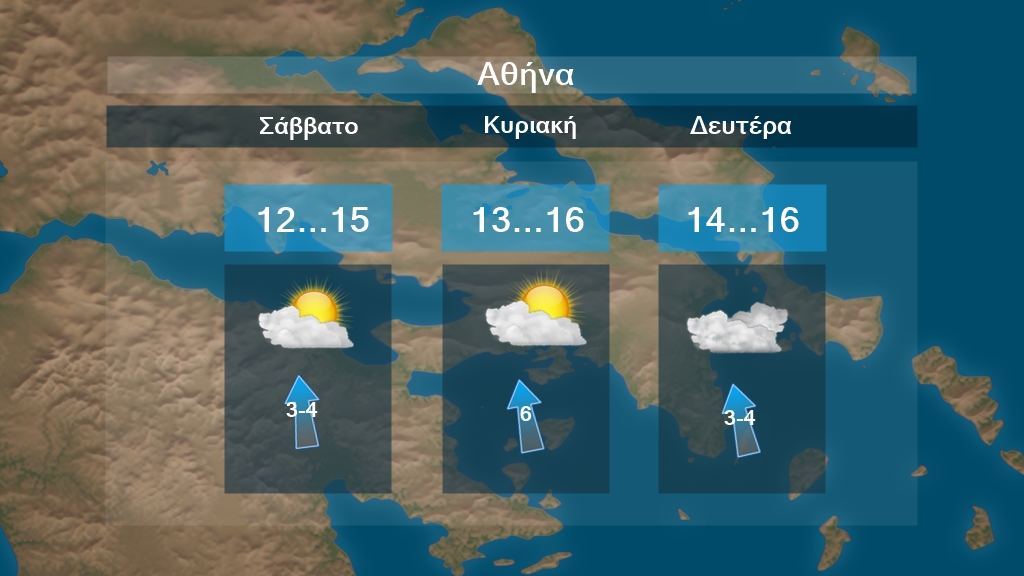 Στην Αθήνα προβλέπονται τοπικές νεφώσεις παροδικά αυξημένες . . Η μέγιστη θερμοκρασία θα φτάσει περί τους 15 με 16 βαθμούς Κελσίου