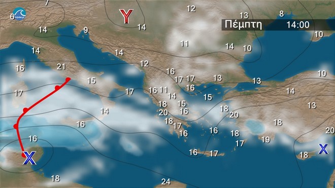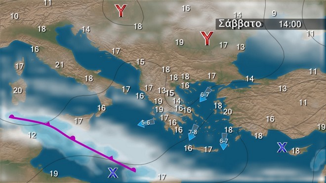 Η θερμοκρασία: θα έχει μέγιστη τιμή στα βόρεια τους 15 βαθμούς στα δυτικά τους 17 στα υπόλοιπα ηπειρωτικά τους 16 βαθμούς και στα νησιά του Αιγαίου τους 16 με 17 βαθμούς Κελσίου.