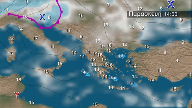 Τη Πέμπτη στην Κρήτη προβλέπονται νεφώσεις με τοπικές βροχές και στα ορεινά παροδικές χιονοπτώσεις με βελτίωση το απόγευμα. Στα δυτικά και βόρεια θα επικρατήσεις γενικά αίθριος καιρός με πρόσκαιρες νεφώσεις στη Θράκη τις πρωινές ώρες. Στα υπόλοιπα προβλέπονται νεφώσεις με τοπικές βροχές και βαθμιαία βελτίωση. Οι άνεμοι θα πνέουν από βόρειες διευθύνσεις στα δυτικά και βόρεια 3 με 5 μποφόρ, στα υπόλοιπα 5 με 7 και στο Αιγαίο πρόσκαιρα τοπικά 8 μποφόρ. Σταδιακά οι άνεμοι θα στραφούν σε δυτικούς και θα εξασθενήσουν. Η θερμοκρασία θα παρουσιάσει άνοδο ως προς τις μέγιστες τιμές, ενώ παγετός θα σημειωθεί κατά τόπους στα ηπειρωτικά τις πρωινές και βραδινές ώρες.
