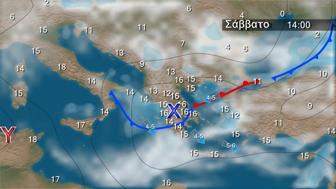 Το Σάββατο προβλέπονται νεφώσεις παροδικά αυξημένες και από το μεσημέρι θα εκδηλωθούν τοπικές βροχές. Οι άνεμοι θα πνέουν από δυτικές διευθύνσεις 3 με 5 και στα νότια τοπικά 6 μποφόρ που σταδιακά θα στραφούν σε βόρειους 5 με 6 και στο Αιγαίο τοπικά 7 μποφόρ. Η θερμοκρασία δεν θα παρουσιάσει αξιόλογη μεταβολή.