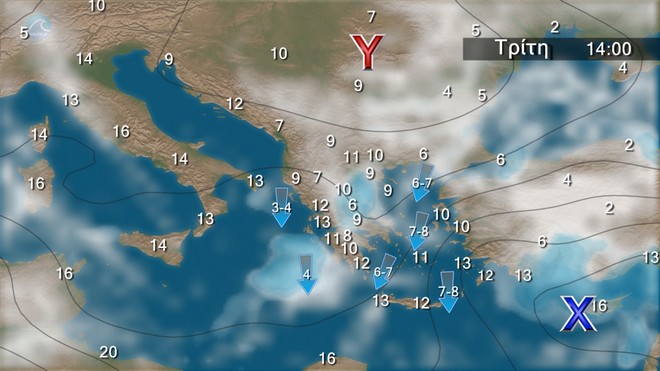 • Οι άνεμοι θα φτάνουν στο Αιγαίο τα 5 με 6 μποφόρ και κατά περιόδους τα 7 με 8 μποφόρ