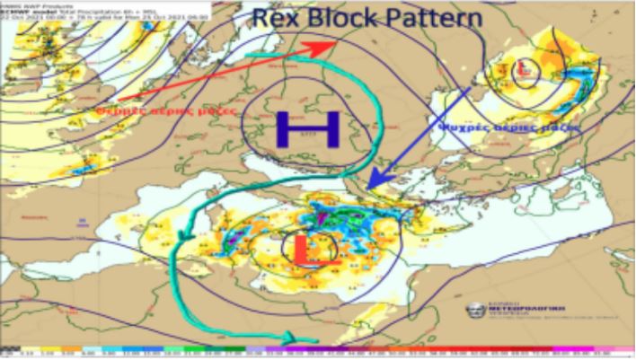 Πολλές φορές μετά από ένα οπισθοδρομούν χαμηλό διατηρείται η διάταξη του φαινομένου “REX” αν και αυτή είναι συχνότερη στη Δυτική Ευρώπη εμφανίζεται σε κάποιες περιπτώσεις και στη περιοχή μας. Αξίζει να σημειώσουμε ότι το “Rex Blocking” είναι πράγματι ένα φαινόμενο άξιο αναφοράς αλλά όχι στην συγκεκριμένη περίπτωση για τυχόν έντονα φαινόμενα, αλλά για τη σπανιότητα με την οποία εμφανίζεται στα κεντρικά.