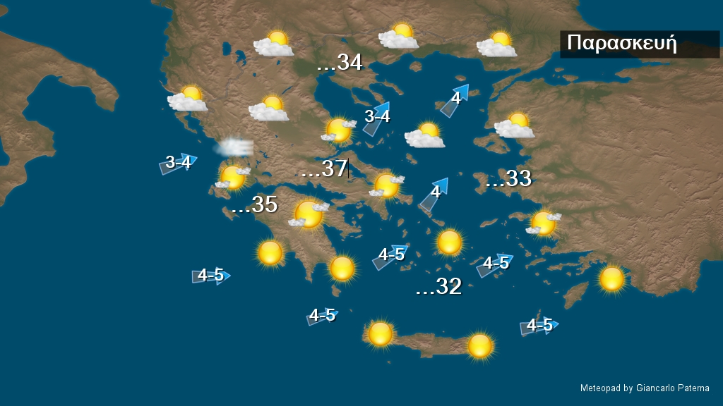 Η θερμοκρασία θα σημειώσει περαιτέρω άνοδο και τοπικά στα ανατολικά ηπειρωτικά θα φτάσει περί τους 37 με 38 βαθμούς Κελσίου.