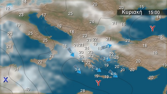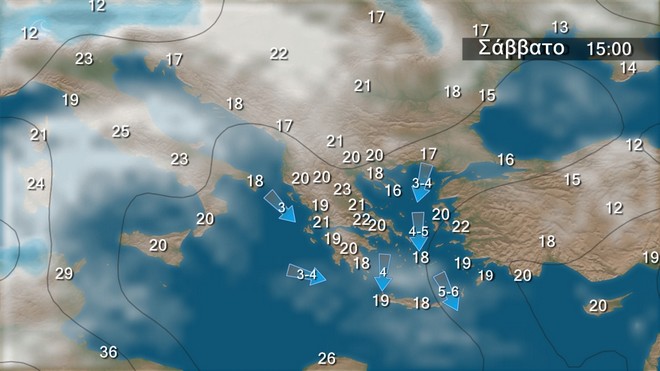Στην ανατολική και νότια νησιωτική χώρα τοπικές νεφώσεις τις πρωινές ώρες με πιθανότητα τοπικών βροχών στα Δωδεκάνησα και γρήγορα γενικά αίθριος καιρός. Στην υπόλοιπη χώρα αίθριος καιρός και μόνο στα βορειοανατολικά τις μεσημβρινές ώρες θα υπάρχουν πρόσκαιρες νεφώσεις. Οι άνεμοι θα πνέουν βόρειοι βορειοδυτικοί 4 με 6 και στα νοτιοανατολικά τοπικά 7 μποφόρ με σταδιακή εξασθένηση από το απόγευμα. Η θερμοκρασία θα σημειώσει μικρή άνοδο κυρίως στα ηπειρωτικά.