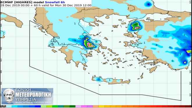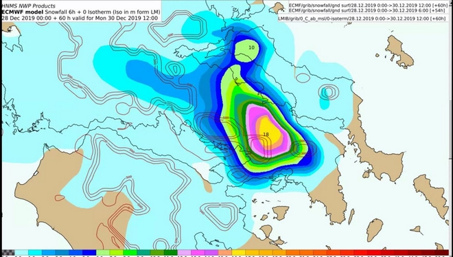 γ. Χιονοπτώσεις κατά περιόδους πυκνές θα εκδηλώνονται σε ορεινές και ημιορεινές περιοχές καθώς και σε περιοχές με χαμηλότερο υψόμετρο (200-400m) της Θεσσαλίας, της ανατολικής Στερεάς και της Εύβοιας. Επίσης χιονοπτώσεις θα εκδηλωθούν στα ορεινά και ημιορεινά της βορειοανατολικής Πελοποννήσου, της Κρήτης, των Σποράδων, των νησιών του βόρειου και ανατολικού Αιγαίου και πιθανώς στις βόρειες Κυκλάδες (όπως ήδη είδατε στο προηγούμενο βίντεο).