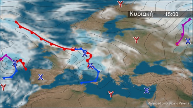 Στον χάρτη της Βαλκανικής διακρίνεται το ομαλό πεδίο που επικρατεί στη περιοχή μας, αλλά και το ισχυρό χαμηλό στη Βόρεια Ιταλία.