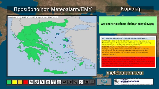 Από πλευράς επικινδυνότητας πυρκαγιών θα έχουμε Υψηλό Κίνδυνο Πυρκαγιάς για Σάμο, Ικαρία, Δωδεκάνησα, Ν. Λασιθίου και Ν. Ηρακλείου σύμφωνα με την πρόβλεψη της Γενικής Γραμματείας Πολιτικής Προστασίας.